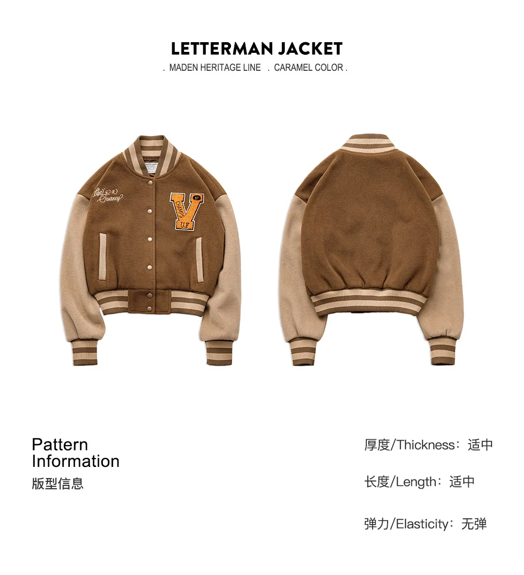Vintage Collegiate Baseball Jacket with Letter Embroidery Woolen Thicker Short Versatile Coat for Women'S Fall and Winter